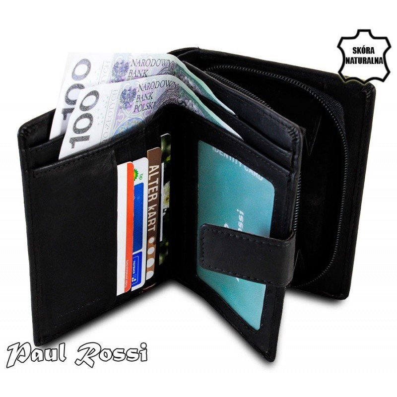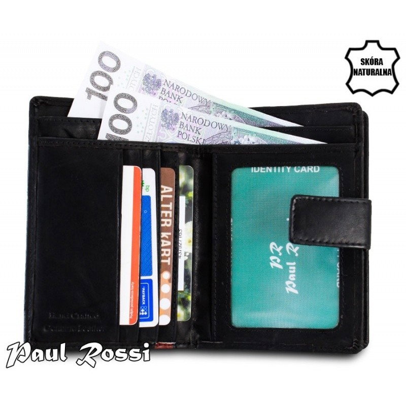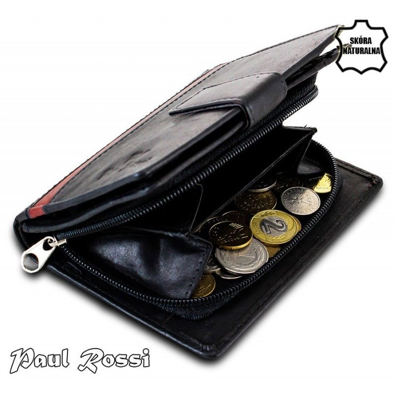 Portofel piele naturala Paul Rossi PORT801 negru cu dunga de culoare rosu burgund, UNISEX. Acest portofel elegant din piele naturala este in acelasi timp foarte practic si usor de folosit datorita dimensiunilor medii si compartimentarilor. Este un accesoriu sigur si usor de folosit, cu multiple compartimente interioare pentru bancnote, acte si monede. Ideal pentru cadou (portofelul este ambalat in cutie de carton originala branduita cu marca producatorului).