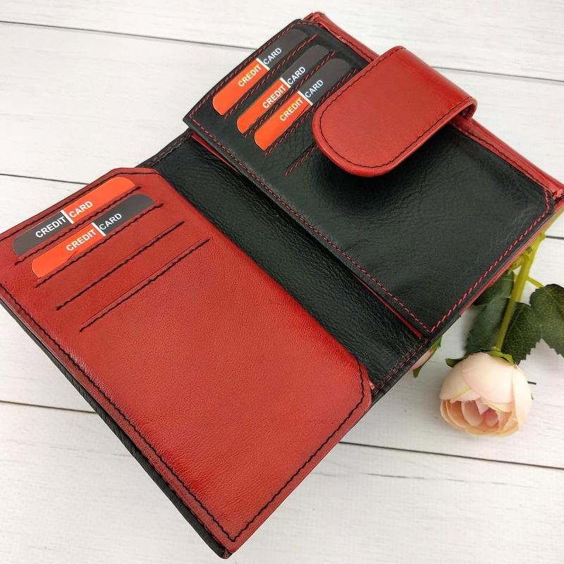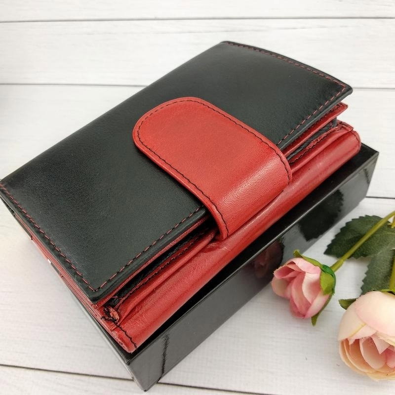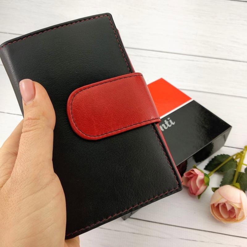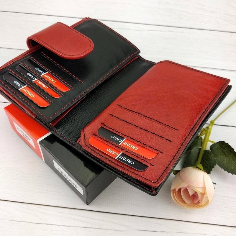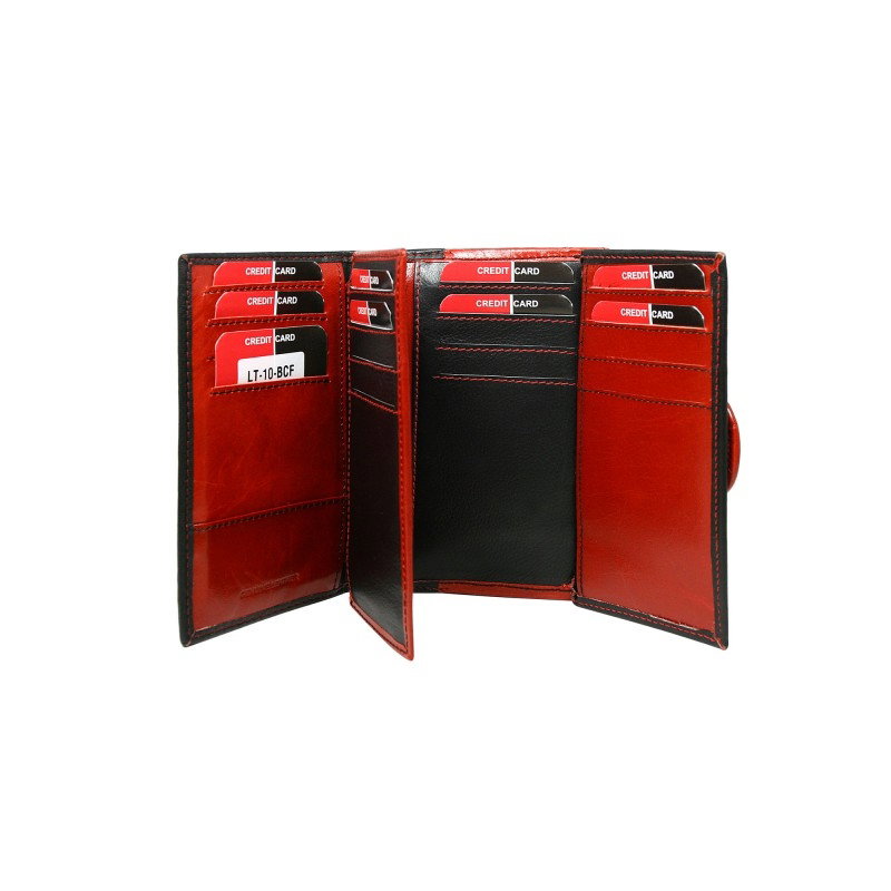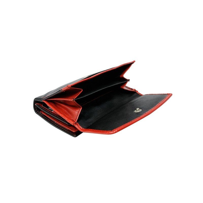 Portofel dama elegant din piele naturala Lorenti PORT802 Rosu cu Negru. Acest portofel premium din piele naturala de calitate este un accesoriu sigur si usor de folosit, cu multiple compartimente interioare pentru bancnote, acte si monede. Ideal pentru cadou (portofelul este ambalat in cutie de carton originala branduita cu marca producatorului).