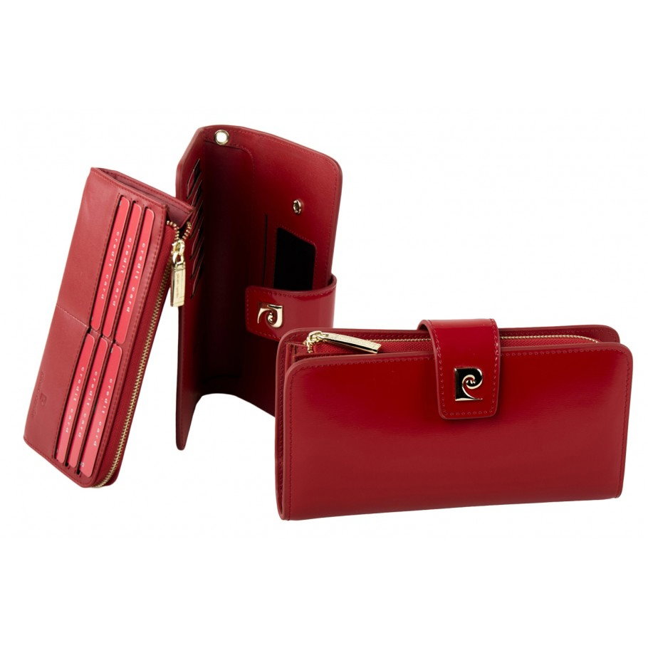 Portofel elegant pentru femei din piele naturala lacuita, cu miniportofel detasabil (prindere cu capse) Marcă: Pierre Cardin Închidere exterioară cu capsa Închidere internă cu fermoar 6 sloturi pentru card de credit Dimensiuni: 20x10x4 cm - Livrat in cutie originala branduita cu marca producatorului (ideal pentru cadou)