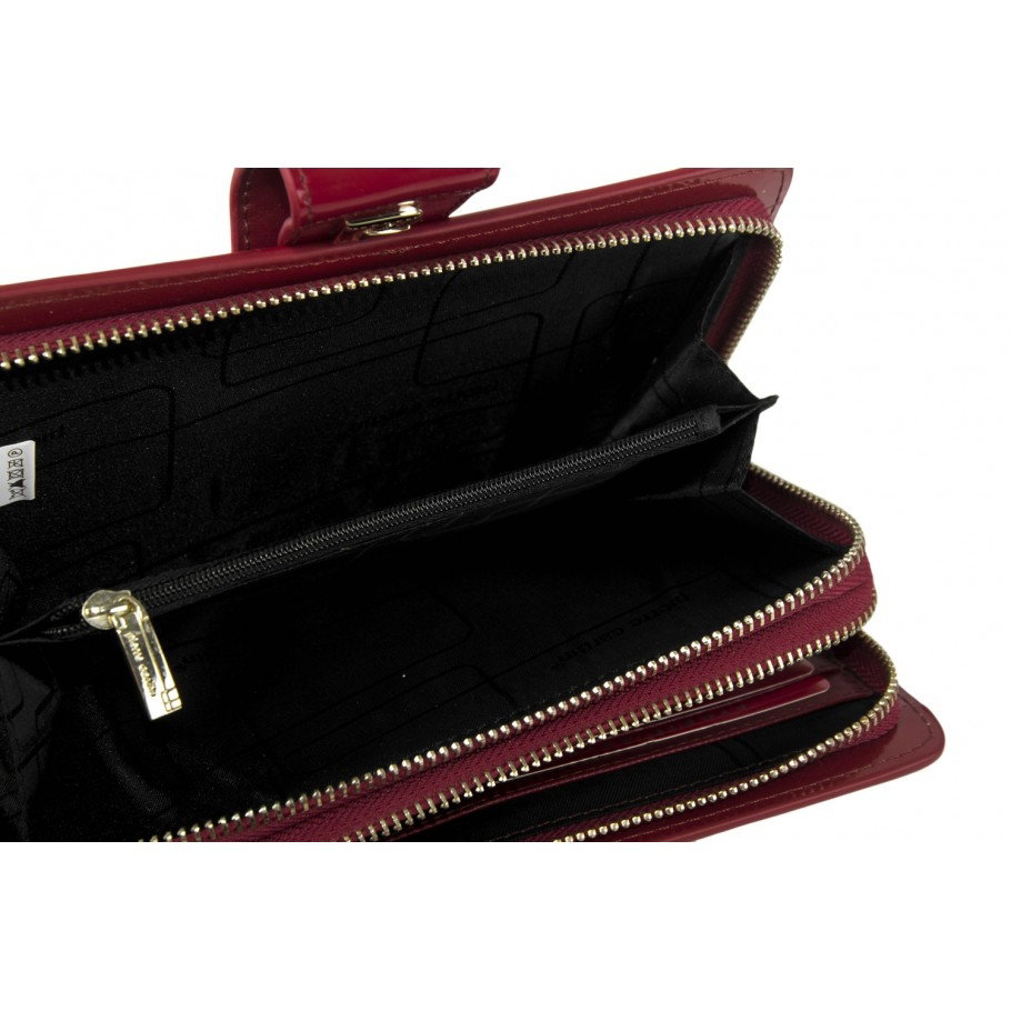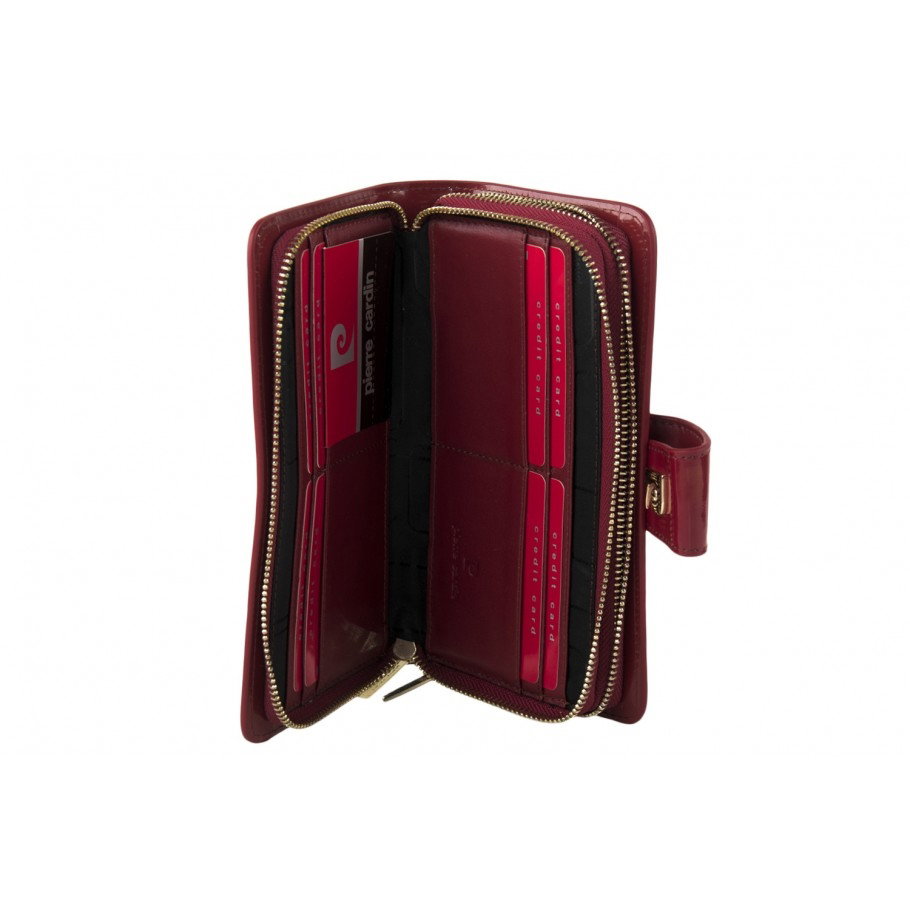 Portofel elegant pentru femei cu doua fermoare Marcă: Pierre Cardin Tip piele: lacuita Închidere exterioară cu capsa Închidere dublă cu fermoar Multiple compartimente pentru carduri de credit Dimensiuni: 20,5 * 11 * 5 cm - Livrat in cutie originala branduita cu marca producatorului (ideal pentru cadou)