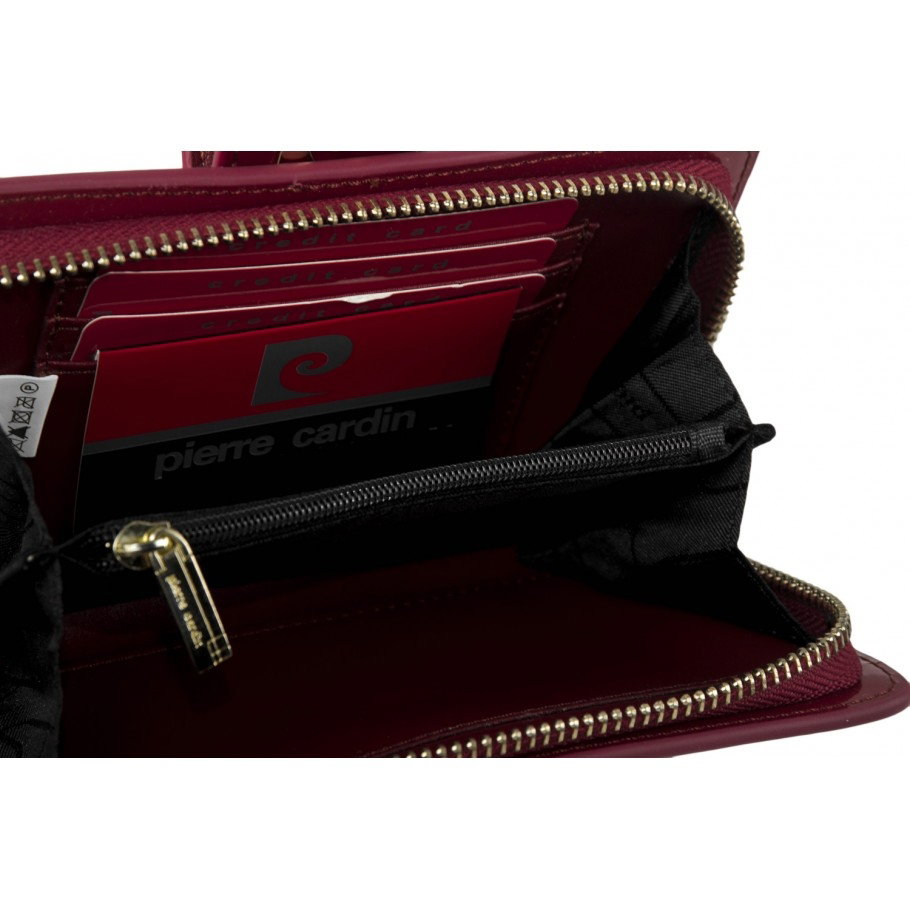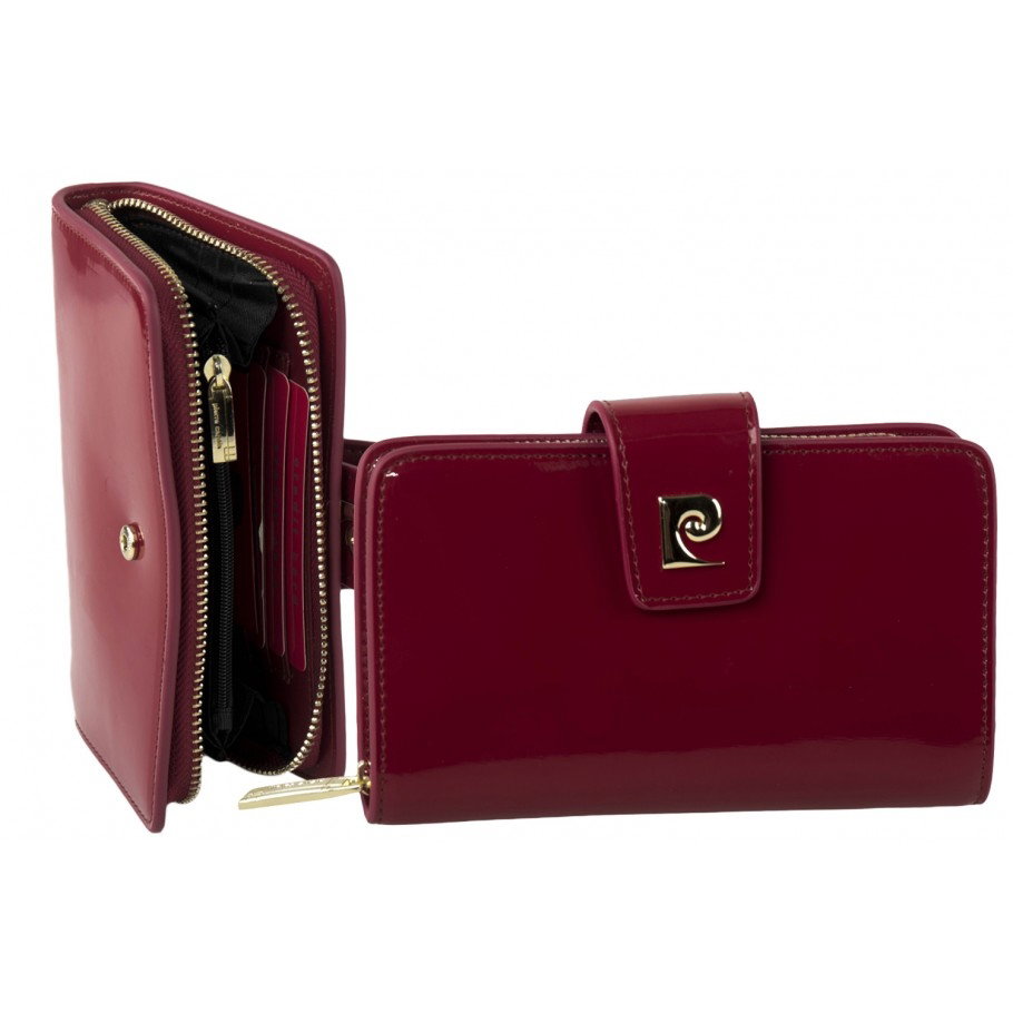 Portofel elegant pentru femei Tip piele: lacuita Marcă: Pierre Cardin Închidere exterioară cu capsa Închidere internă cu fermoar 6 sloturi pentru card de credit Dimensiuni: 18 * 11 * 3 cm - Livrat in cutie originala branduita cu marca producatorului (ideal pentru cadou)