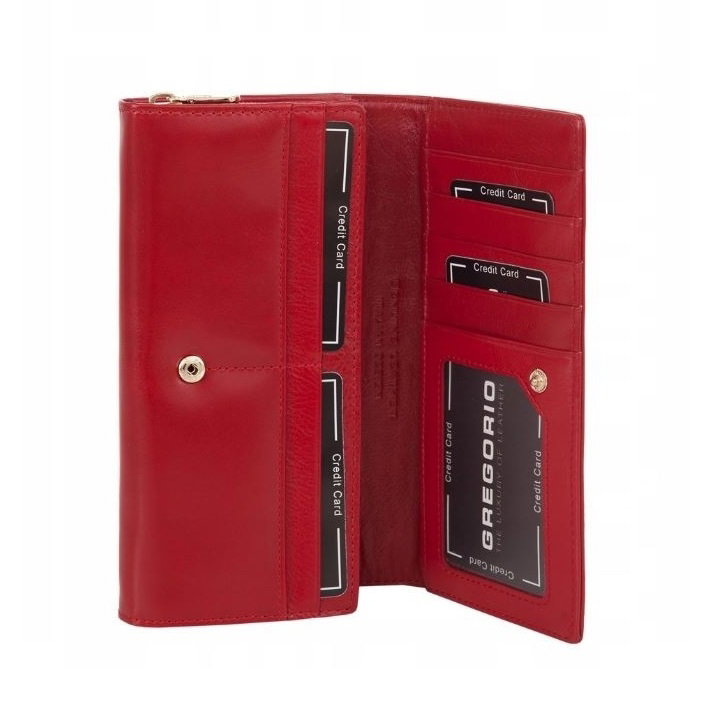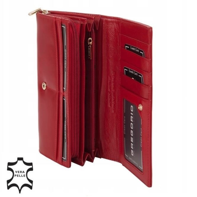 Portofel de lux pt. dama din piele naturala Gregorio PORT512 Rosu. Acest portofel din piele naturala este un accesoriu sigur si usor de folosit, cu multiple compartimente interioare pentru bancnote, acte si monede. Ideal pentru cadou (portofelul este ambalat in cutie de carton originala branduita cu marca producatorului).