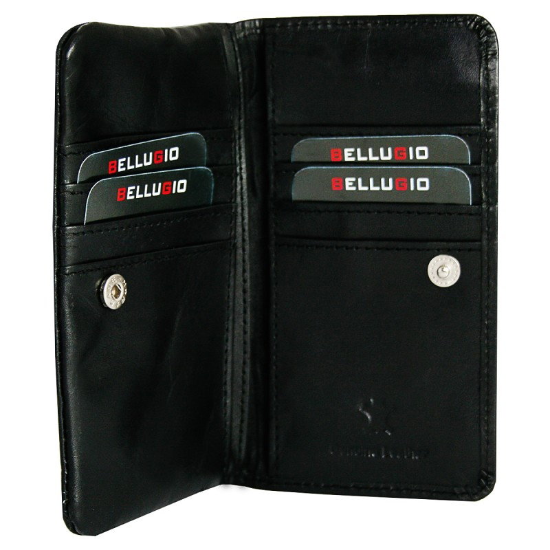 Portofel plat pentru dama din piele naturala Bellugio PORTZ004 Negru. Acest portofel din piele naturala este un accesoriu sigur si usor de folosit, cu multiple compartimente interioare pentru bancnote, acte si monede. Ideal pentru cadou (portofelul este ambalat in cutie de carton originala branduita cu marca producatorului). Dimensiuni: 14 x 10 x 2 cm