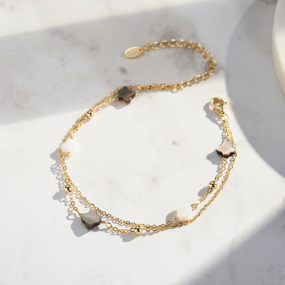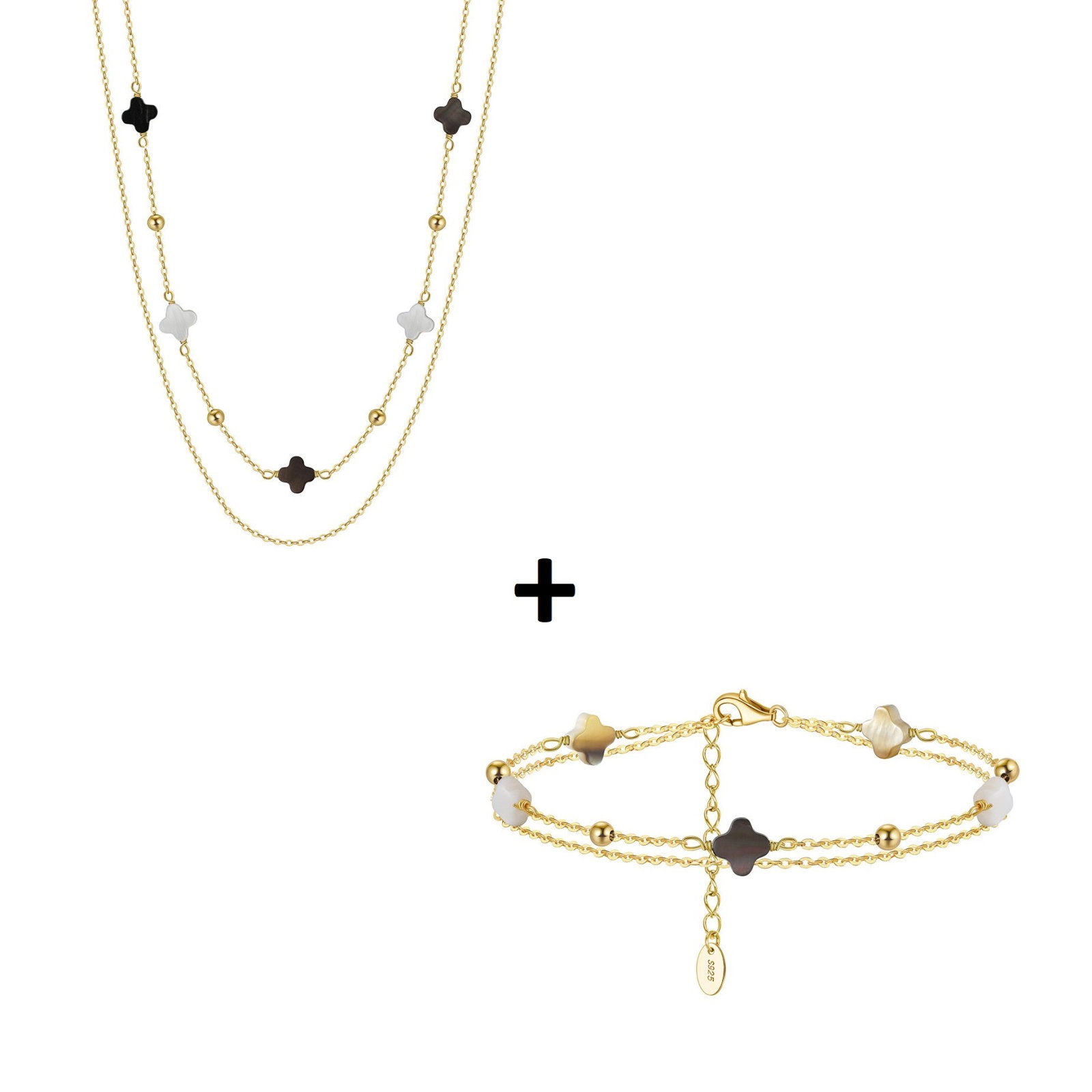 Dimensiuni: Colier: Lungime: 40+5 cm, Pietre: 6 mm, Grosime lant: 1,2 mm. Material: Argint 925 placat cu aur 14K. Culoare: Auriu. Pietre: Sidef. Greutate: 2,98 grame. Bratara: Lungime: 16,5+5 cm, Pietre: 6 mm, Grosime lant: 1,2 mm. Material: Argint 925 placat cu aur 14K. Culoare: Auriu. Pietre: Sidef. Greutate: 2,18 grame.