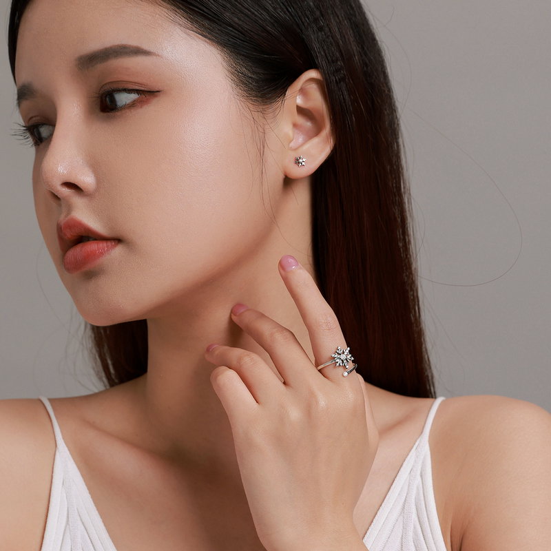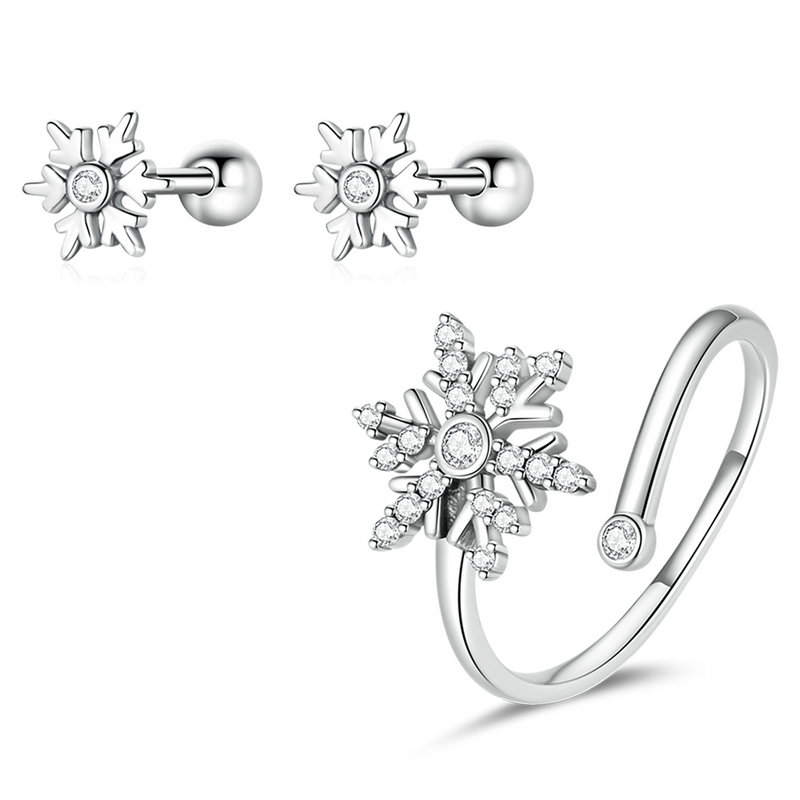 Dimensiuni: Cercei 0,6 x 0,5 cm, Latime inel 0,12 cm, Fulg de zapada 1,2 x 1,1 cm, Greutate 2,8 grame