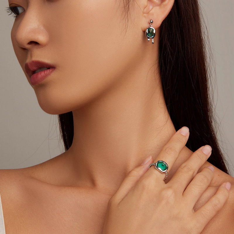 Dimensiuni: Cercei 2,4 x 1 cm, Latime inel 0,3 cm, piatra principala 1,2 x 1,3 cm, Greutate 5 grame