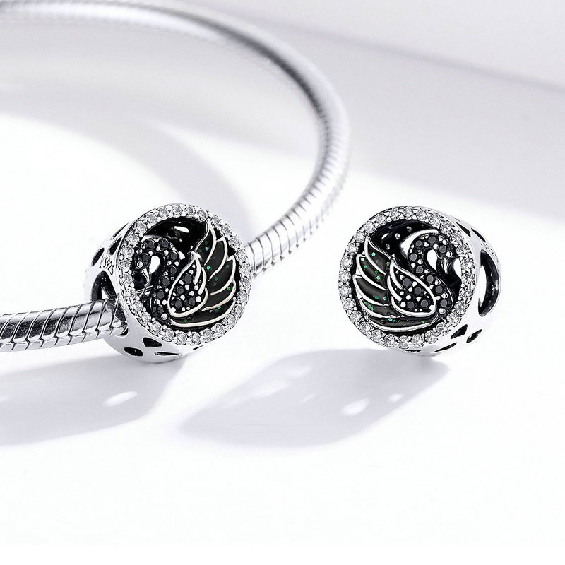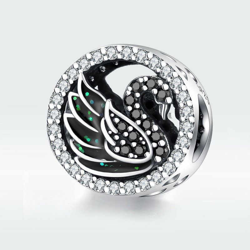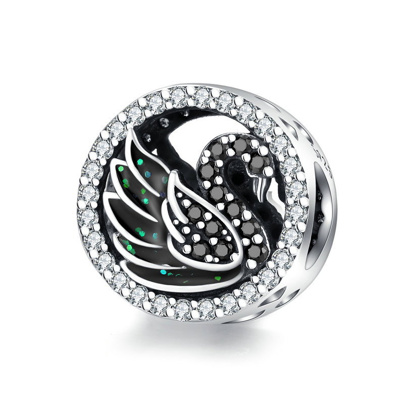 Talisman din argint 925 cu Lebada Neagra si zirconii. Inaltime * Latime: 1,1*1,1 cm, Greutate: 1,95 grame